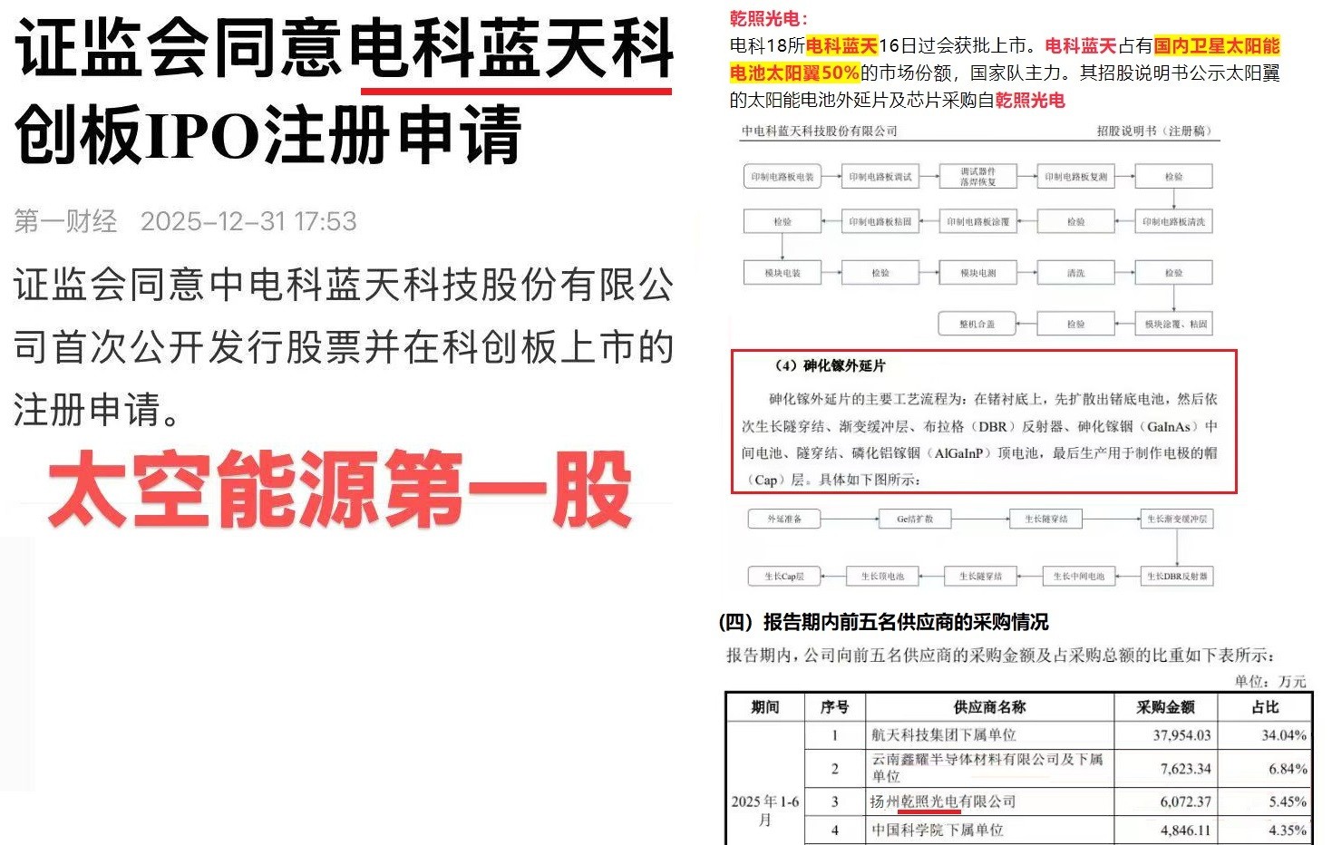 - 核心逻辑:港股商业航天概念股开年大涨,电科蓝天科创板IPO注册获批,打响国内商业航天上市“第一枪”;地缘事件频发促进行业加速发展,卫星抗干扰与自主可控技术成为焦点。