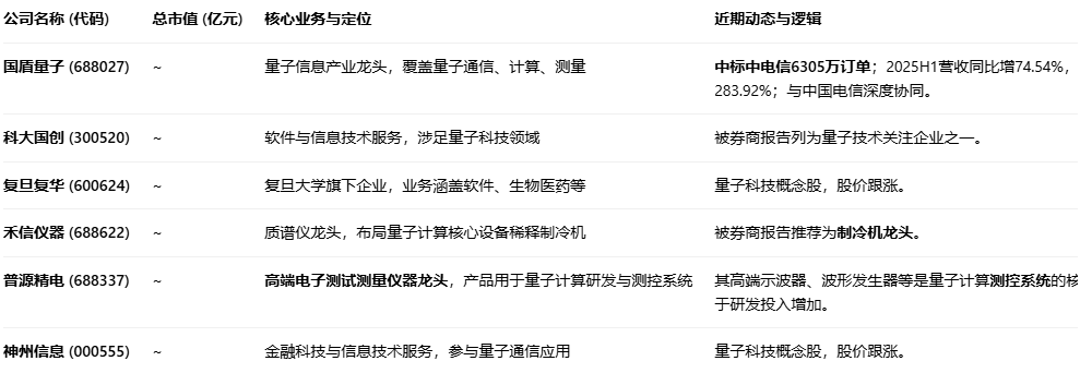 基于量子计算产业链的不同环节,核心企业: