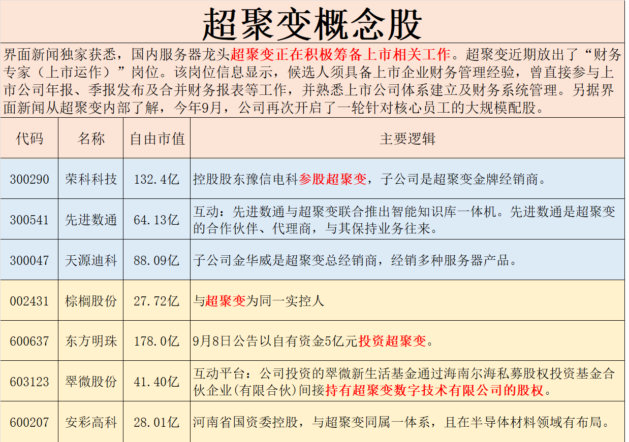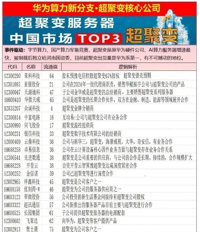 - 核心逻辑:监管层强调推进更具包容性的发行上市与并购重组制度;国内服务器龙头超聚变积极筹备上市,近期释放“财务专家(上市运作)”岗位信号,市场关注其资本进程。