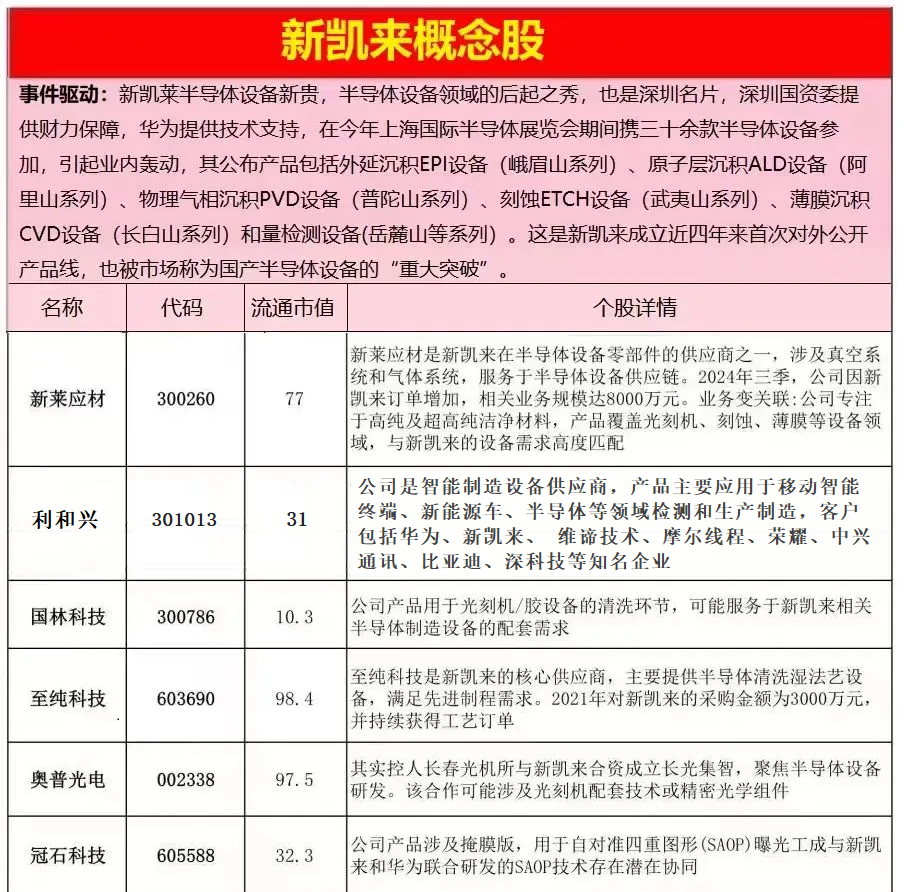 - 核心企业:利和兴、新莱应材、台基股份、恒为科技、云天励飞、中辰股份、东芯股份。