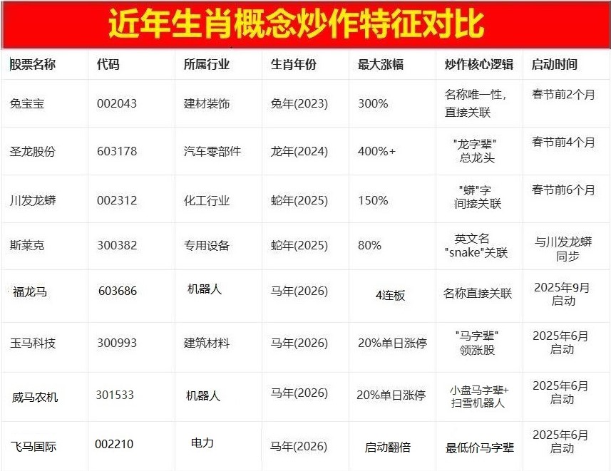 - 核心逻辑:A股历来存在生肖主题炒作惯性,临近年末,与生肖“马”相关标的关注度逐步升温。