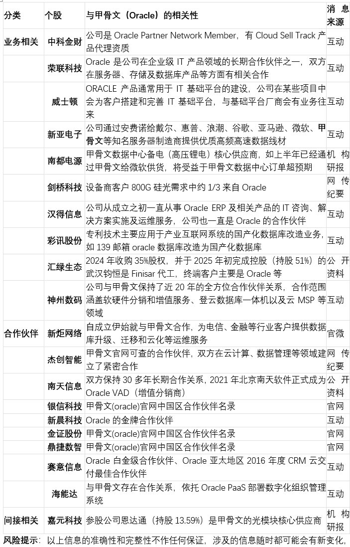 以下是相关的甲骨文概念股分类梳理,仅供参考: